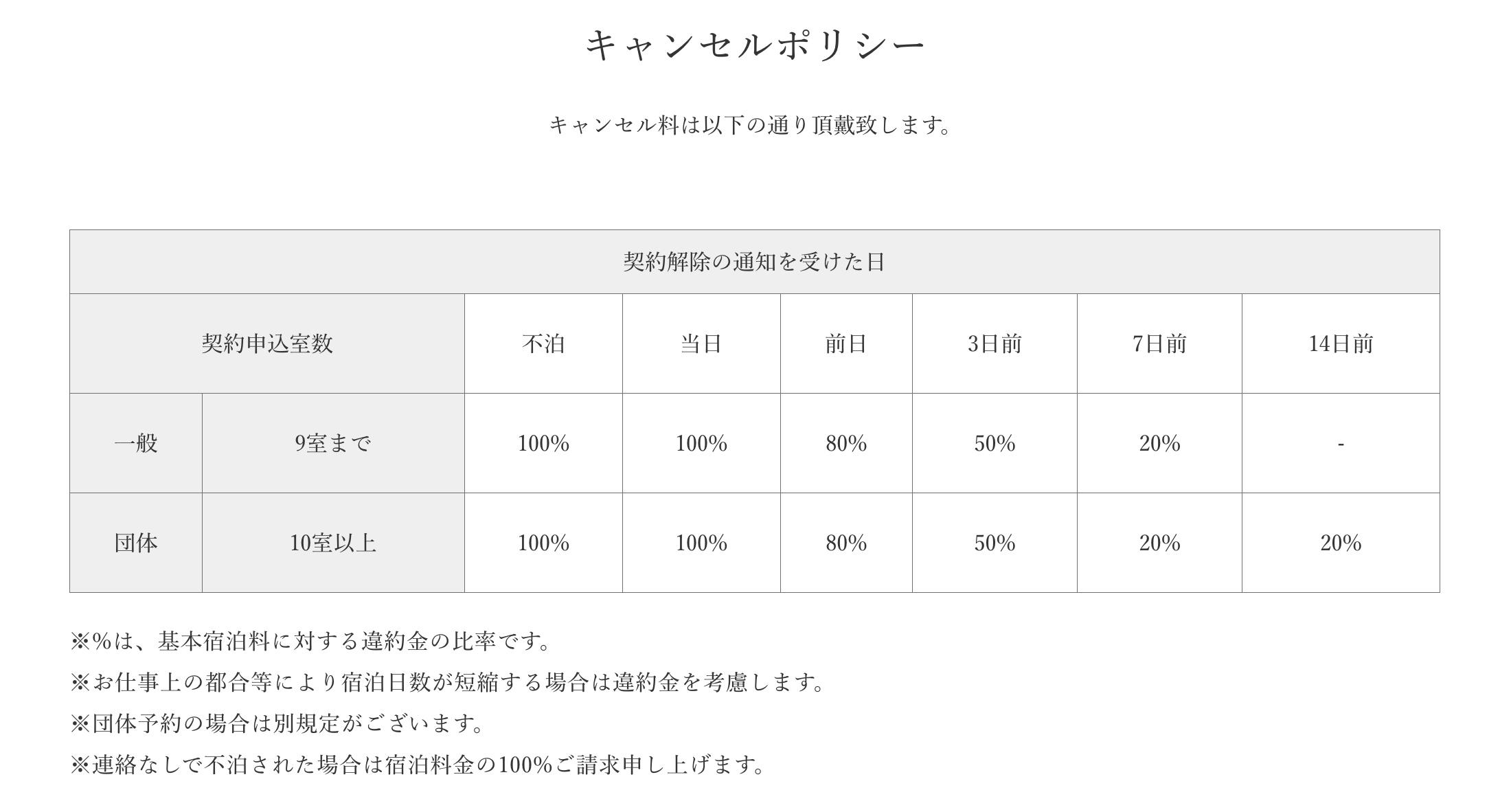 \Qキャンセル料を教えてください?
