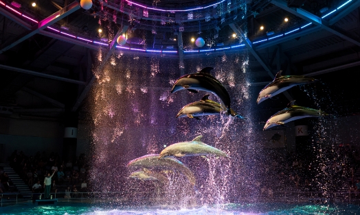 \\ 品川駅から徒歩約2分という好立地ながら約350種、20,000点にも及ぶ世界の海の生きものに会える、都市型水族館。室内の円形スタジアムで行われる、プロジェクションマッピングを活用したイルカショーは、何度でも観たくなるワクワク感が人気。大人のデートスポットとしてもおすすめです。\